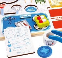 Entdecken Sie ein unterhaltsames und lehrreiches Holz-Einlegepuzzle mit Arzt-Thema, das Kindern hilft, grundlegende medizinische Instrumente kennenzulernen und dabei Feinmotorik, logisches Denken und die Hand-Auge-Koordination fördert. Die hochwertige Verarbeitung aus Sperrholz mit sicheren Farben garantiert Langlebigkeit und sicheres Spiel für Kinder ab 3 Jahren.
