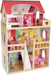 Das Puppenhaus erreicht eine Höhe von 90 cm, was es zu einem der größten auf dem Markt macht. Es ist aus robustem Holz gefertigt, das Stabilität und Sicherheit beim Spielen gewährleistet.