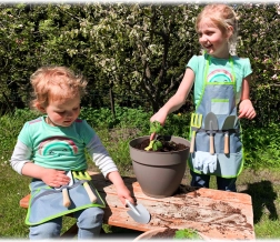 Das Set ist für Kinder ab 3 Jahren konzipiert und eignet sich nicht nur für den Garten, sondern auch als Küchenschürze oder als Schutz beim Malen und Basteln. Alles ist in modernen Farben gehalten, die Kindern gefallen und zudem leicht zu reinigen sind.