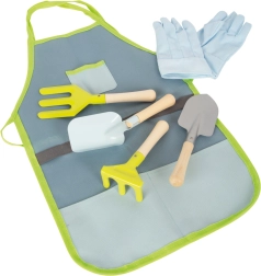 Schürze, Handschuhe, 4 Werkzeuge (Spaten, Harke, Schaufel, Gabel)