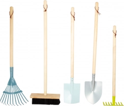 Holzstiele und Arbeitsköpfe aus Metall halten dem täglichen Einsatz im Garten, Sandkasten und Hof stand.