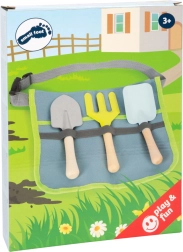 Schaufel, Harke und Spaten in Kindergröße bestehen aus robustem Metall. Glatte Holzgriffe liegen gut in kleinen Händen und unterstützen einen sicheren Griff.