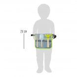 Die Textil-Bauchtasche mit praktischen Fächern hält die Werkzeuge sicher an Ort und Stelle. Der verstellbare Gürtel mit Klickverschluss passt sich leicht dem Wachstum des Kindes an.