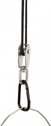 Praktische Karabiner ermöglichen die schnelle Befestigung an Balken, Haken oder provisorischen Verankerungen – werkzeuglos und in wenigen Augenblicken.