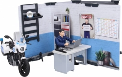 Diese BWORLD Bruder Polizeistation bietet eine großartige Gelegenheit für Kinder, ihre eigenen Geschichten und Szenarien zu erstellen. Die Polizeistation dient als Koordinationszentrum mit einem Bürobereich, in dem der Polizist Missionen überwachen und steuern kann. Die Station enthält: