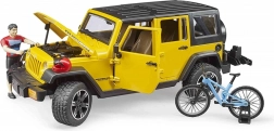 Bruder Jeep Wrangler Rubicon mit Radfahrer und Fahrrad