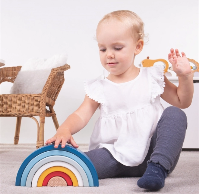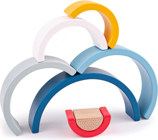 Das Set aus 7 farbigen Bögen motiviert Kinder zum Stapeln, Sortieren und Balancieren. Das Spiel fördert die Auge-Hand-Koordination und das räumliche Wahrnehmen bereits ab 18 Monaten.
