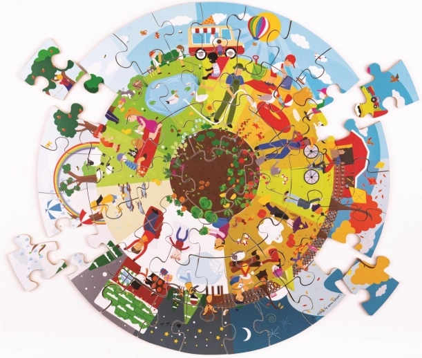 Das runde Bodenpuzzle für Kinder von Bigjigs Toys bietet eine einzigartige Möglichkeit, wie Kinder sich mit den saisonalen Veränderungen vertraut machen können. Jedes Puzzleteil ist präzise gestaltet, um eine vollständige 360-Grad-Szene zu schaffen, die verschiedene Aktivitäten und Landschaften zeigt, die für Frühling, Sommer, Herbst und Winter typisch sind.
