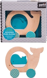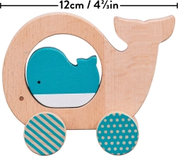 Dieses stilvolle und sichere Holzspielzeug bringt Kindern Freude an Bewegung und Entdeckung. Die abgerundeten Formen liegen gut in kleinen Händen, in der Mitte des Wal-Körpers befindet sich eine Öffnung mit einer lose eingelegten Jungtierfigur, die zu interaktivem Spiel anregt und die Auge-Hand-Koordination verbessert.