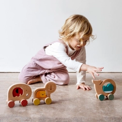 Hochwertiges FSC-Buchenholz und Farben auf Wasserbasis gewährleisten Langlebigkeit und gesundheitliche Unbedenklichkeit. Der nachhaltige Ansatz der Marke PETIT COLLAGE wird durch die recycelte Verpackung bestätigt, die mit Sojatinte bedruckt ist. Ideal als Geschenk zum Geburtstag oder für werdende Mütter.
