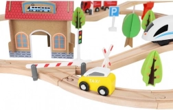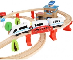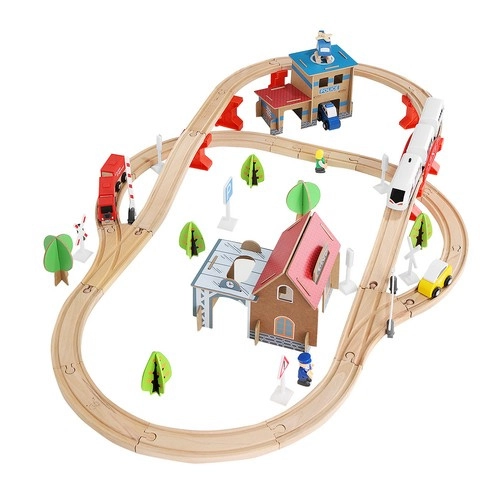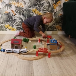 Diese Holzeisenbahn mit Gleisen ist ein perfektes Geschenk, das jedes Kind lieben wird, unabhängig vom Geschlecht. Es ist ein tolles Spielzeug für stundenlange Unterhaltung mit Eltern oder Gleichaltrigen.