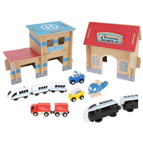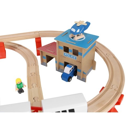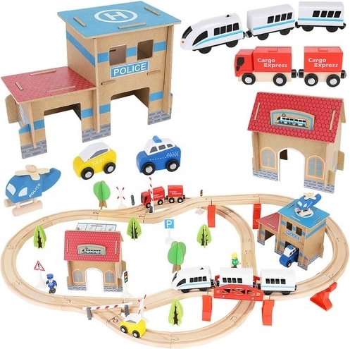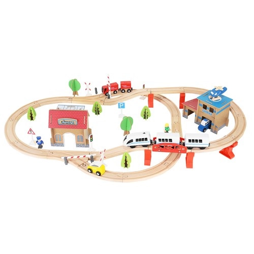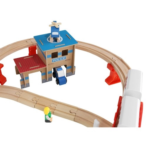 Entfacht die Fantasie – dieses Spielzeug stimuliert die Kreativität und Vorstellungskraft der Kleinen. Kinder können ihre eigenen Gleise entwerfen und bauen sowie eine Landschaft rundherum gestalten. Das Testen der selbst gebauten Strecken macht jedem Kind Freude. Fördert Entwicklung – nicht nur ein großartiges Vergnügen, sondern auch eine Förderung der räumlichen Wahrnehmung und der Feinmotorik, was die Hand-Augen-Koordination unterstützt, die in der Zukunft wichtig ist. Sicher – alle Teile sind gut geschliffen und mit umweltfreundlichen Farben bemalt. Es gibt keine hervorstehenden, scharfen Teile, die Verletzungen verursachen könnten. Set mit 89 Teilen – präzise gefertigte Teile, die nach Belieben arrangiert werden können. Beinhaltet z.B. Schienen, Zug, zwei Autos, Polizeihubschrauber mit Landeplatz, Lastwagen mit Anhänger, Figuren, Bahnhof und vieles mehr. Magnetische Verbindung – keine unnötigen Haken, die sich lösen könnten. Starke Magnete halten das Set zusammen, selbst wenn man es in die Luft hebt.