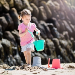 Perfekt zum Bauen von Sandburgen, Wassertragen oder Helfen beim Autowaschen.