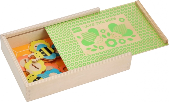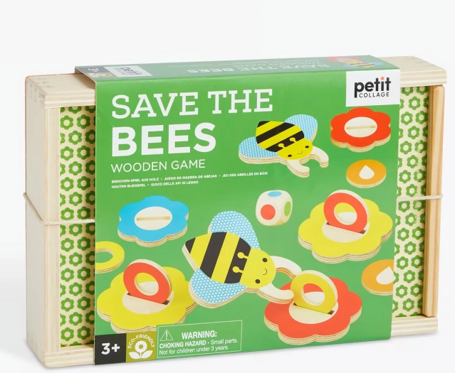 Dieses Spiel ist ideal für Kinder ab 3 Jahren, die auf spielerische Weise die Bedeutung der Bienen in unserem Ökosystem kennenlernen möchten. Die Spieler würfeln, suchen nach passenden Farben und helfen so den Bienen, Nektar zu sammeln. Die gesamte Spielverpackung besteht aus robustem Sperrholz und recyceltem Papier, was einen ökologischen Ansatz garantiert.