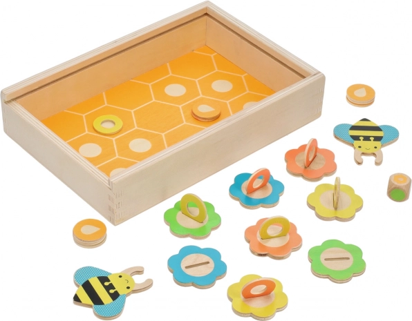 Helfen Sie den Bienen, Nektar zu sammeln und Honig zu produzieren mit diesem bunten Holzspiel für 2 Spieler. Lernen Sie über die Bedeutung der Bienen in der Natur und genießen Sie die praktische Verpackung des Spiels.