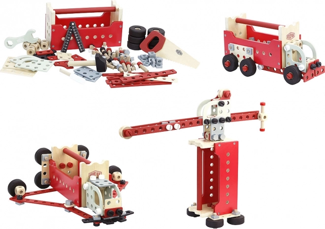Das Set besteht hauptsächlich aus hochwertigem Holz und enthält langlebige Komponenten, die eine lange Lebensdauer der Spielzeuge garantieren.