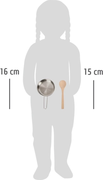 Umfangreiches Kochset enthält einen Topf mit Deckel, eine Pfanne, einen Schneebesen, einen Spatel und einen Holzlöffel. Ebenfalls enthalten sind eine Kinderkochschürze, ein Topflappen und ein Textilhandschuh. Ideales Zubehör für kreatives Spielen in der Kinderküche.