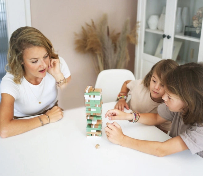 Trendige Pastellfarben, goldene Details und Naturholz machen dieses Spiel zu einem stilvollen Highlight, das in jedes Interieur passt.