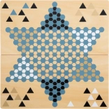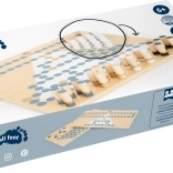 Das beidseitige Spielbrett besteht aus zwei Teilen, die dank Magneten fest zusammenhalten. Hochwertige Holzfiguren liegen gut in der Hand und die robuste Kartonbox ermöglicht einfaches Verstauen und Mitnehmen. Das Spiel ist ideal für Familien und Freunde, fördert Logik, Zugplanung und Geduld.