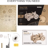 ROBOTIME Rokr bietet ein faszinierendes 3D-Holzpuzzle eines Traktors mit realistischen Details. Dieses mechanische Modell benötigt keine Batterien, einfach den Motor mit einem Schlüssel aufziehen und beobachten, wie es zum Leben erwacht. Dank der Lenkraddrehung können Sie die Bewegungsrichtung der Vorderachsen ändern, was die Interaktivität erhöht.