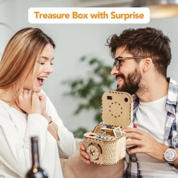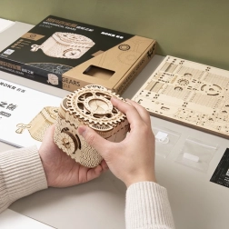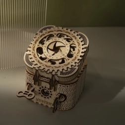 Das hölzerne mechanische Puzzle-Schmuckkästchen aus Sperrholz ist ein einzigartiges Geschenk für Bastler und luxuriöse Innendekorationen. Der Zusammenbau der Box ist mittelmäßig schwierig und bietet eine großartige Herausforderung mit 123 präzise geschnittenen Teilen. Die Box enthält zwei Fächer, darunter das Hauptfach, das mit einem dreistelligen Code gesichert werden kann, den der Benutzer aus vielen Kombinationen wählen kann.