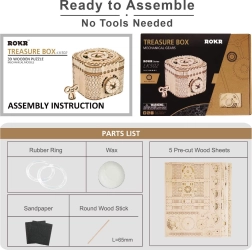 Das mittelmäßig schwierige Puzzle bietet 123 Teile, die aus hochwertigem Sperrholz gefertigt sind und mit einer detaillierten Bauanleitung geliefert werden.