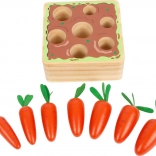 Durch das Einstecken und Sortieren der Karotten verbessern Kinder ihre Feinmotorik und Auge-Hand-Koordination.