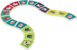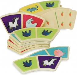 Set aus hölzernen Dominosteinen mit Bauernhof-Motiv, ideal für die Kleinsten dank ihrer gebogenen Form und ausreichender Größe der Teile.