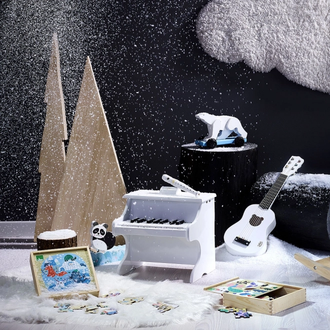 Drei Bilderpuzzles mit Motiven von Savanne, Wald und Eisberg stellen Kindern die Welt der Tiere in ihrer natürlichen Umgebung vor.