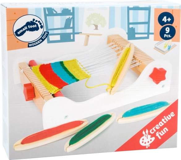 Die kompakte Tischkonstruktion mit übersichtlicher Kettführung und einfachem Durchziehen des Schusses erleichtert Kindern das Verstehen der Webgrundlagen vom ersten Versuch an.