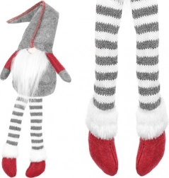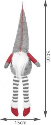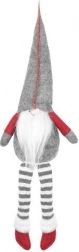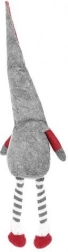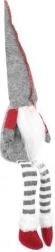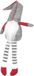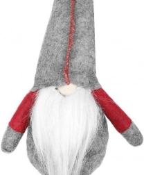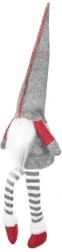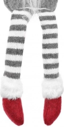 Die textile Dekofigur im grau-roten Design hat eine typische hohe spitze Mütze, lange gestreifte Beine und einen weichen weißen Bart. Dank des speziellen Profils auf der Rückseite sitzet sie stabil auf Tisch- oder Regalkanten und verleiht dem Interieur eine warme, gemütliche Note.