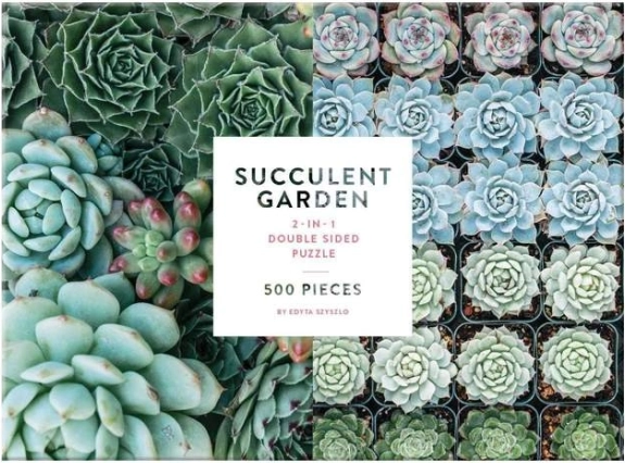 Entdecken Sie die Schönheit von Sukkulenten in zwei unterschiedlichen Motiven in einer Box. Dieses beidseitige Puzzle mit 500 Teilen bietet Herausforderung und Entspannung – eine Seite glänzend, die andere matt für leichtere Orientierung. Der hochwertige Druck überzeugt mit lebendigen Grün- und Blautönen, und die Teile passen präzise ineinander.