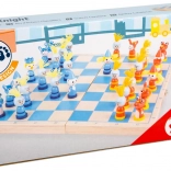 Fröhliche Figuren mit glatter Oberfläche und angenehmem Griff fördern die Konzentration und motivieren zum Erlernen der Schachregeln.