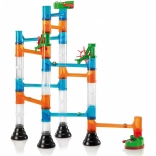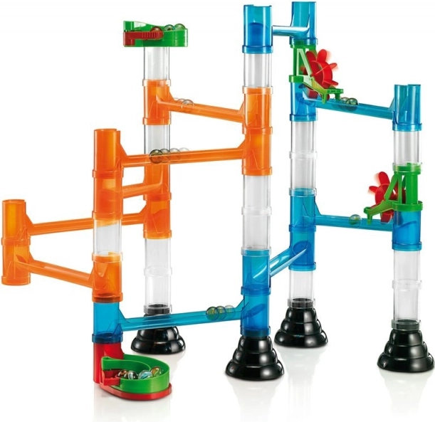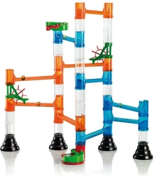 Das Bauset unterstützt das logische Denken der Kinder und ihre Fähigkeit, jede Konstruktion so zu planen, dass die Kugeln die Bahn problemlos durchlaufen.