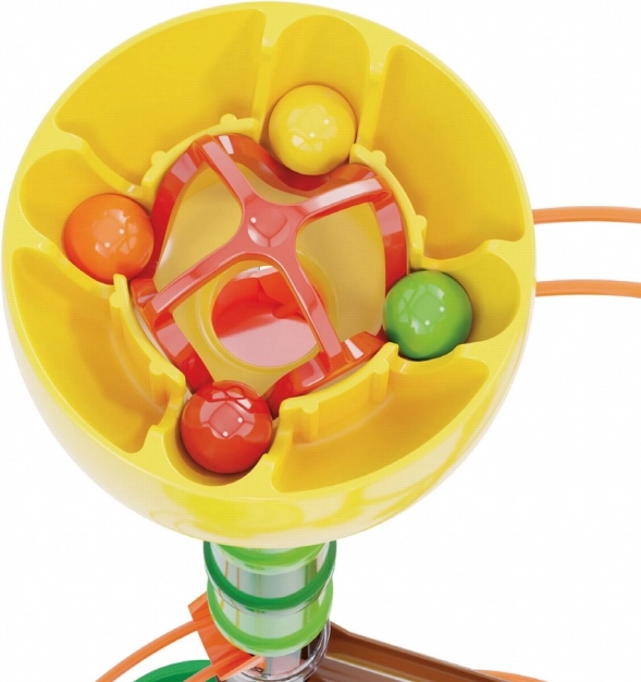 Verschiedene Rutschen, Brücken, Säulen und Spiralen ermöglichen den Aufbau nach Anleitung oder das Gestalten völlig eigener, origineller Strecken.
