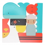 Das Holzpuzzle Auf dem Meer von PETIT COLLAGE bereitet Kindern Freude am Entdecken. Aus den einzelnen Teilen entstehen Bilder mit Seemann, Wal oder Krake, oder sie dienen als eigenständige Figuren für offenes Spielen. Die Teile sind angenehm abgerundet, stabil und farbintensiv und laden so zum wiederholten Puzzeln ein.