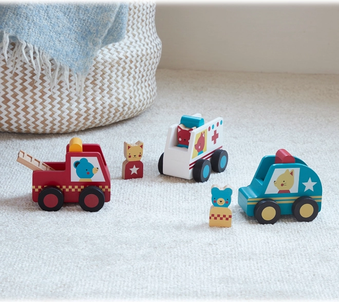 Entdecken Sie den Zauber der Rettungsfahrzeuge, die jedem Kind Freude bereiten. Dieses Set enthält ein Feuerwehrauto, einen Krankenwagen und die Polizei, jeweils mit einer niedlichen tierischen Fahrerfigur.