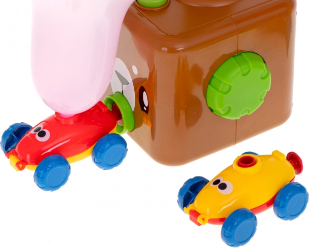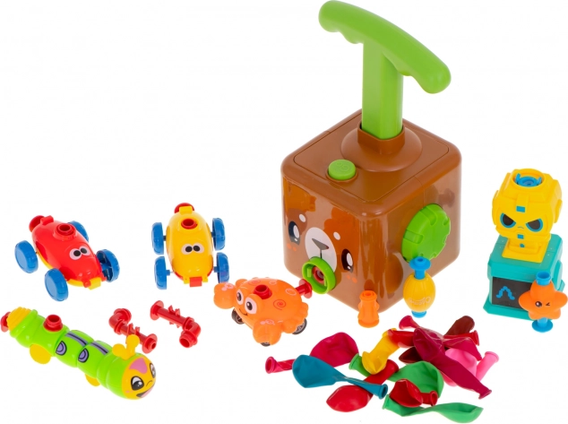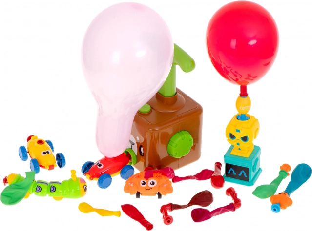 Dieses interaktive Set nutzt die Luft aus dem Ballon zum Antrieb der Autos und weiterer Komponenten. Kinder setzen den Ballon auf, blasen ihn mit einigen Pumpstößen auf und beobachten per Knopfdruck, wie das Auto nach vorne zischt. Das Spiel ist sicher, intuitiv und fördert logisches Denken, Hand-Auge-Koordination und Neugier.