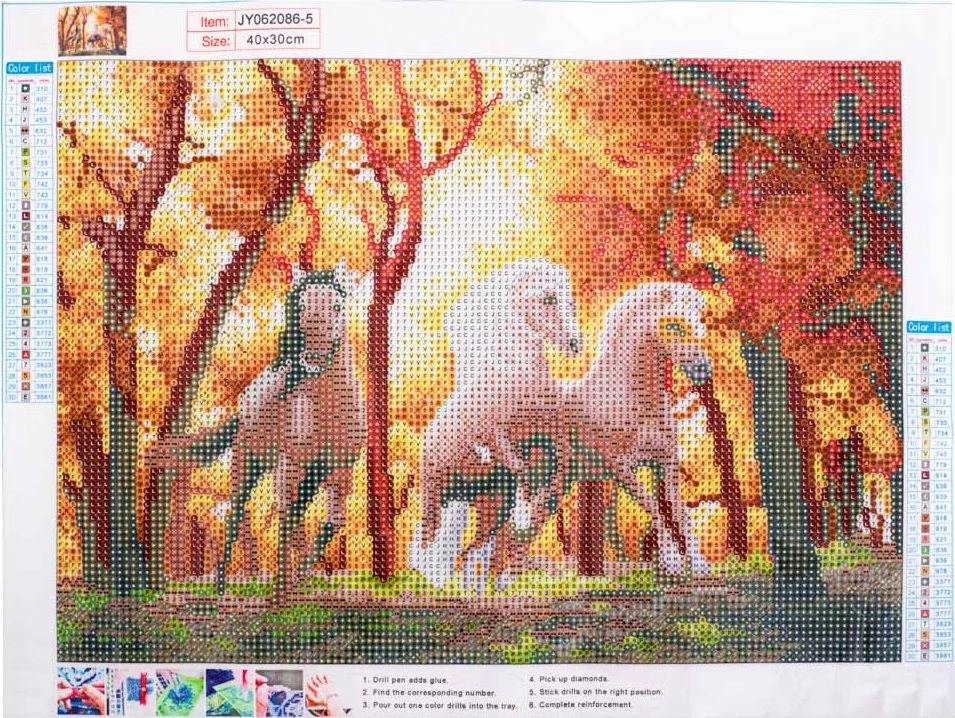 - Einfache Anwendung: Stecken Sie mit einem Spezialstift die kleinen Diamanten auf die markierten Stellen auf der Leinwand.