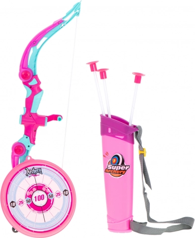Rosa Kinder-Bogenschießset mit Zielscheibe und Saugnapfpfeilen