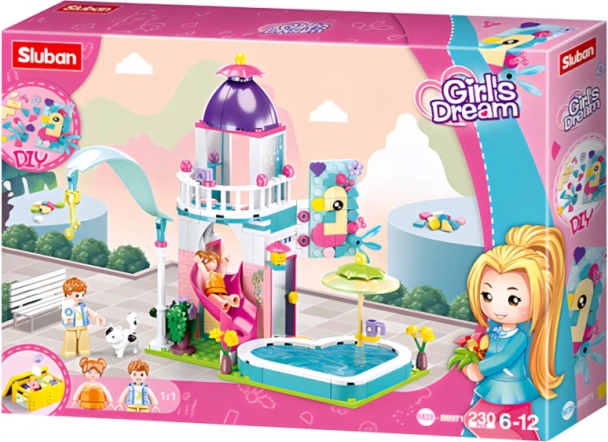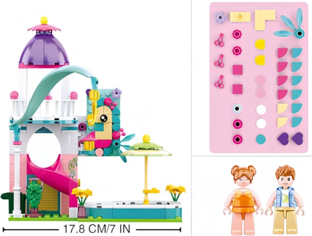 Entdecken Sie die Magie des Baukastens Sluban Häuschen mit Rutsche in den Pool mit 230 Teilen und zwei Figuren, der für mittleren Schwierigkeitsgrad konzipiert ist. Die Figuren sind innovativ mit beweglichen Teilen, und der gesamte Baukasten besteht aus hochwertigem, gesundheitlich unbedenklichem ABS-Kunststoff.