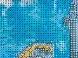- Die Leinwand ist klebend und enthält Felder mit Buchstaben, die mit den Farben der Diamanten korrespondieren.