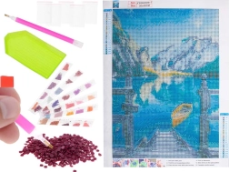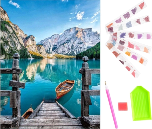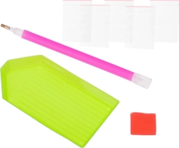 - Kompletter Set-Inhalt: Leinwand mit Bild, farbige Diamanten, Applikator, trockener Kleber, Schale.