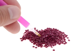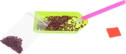 - Farbigen Diamanten in die Schale kippen, den Applikator mit trockenem Kleber bekleben und Diamanten auf die markierten Stellen setzen.