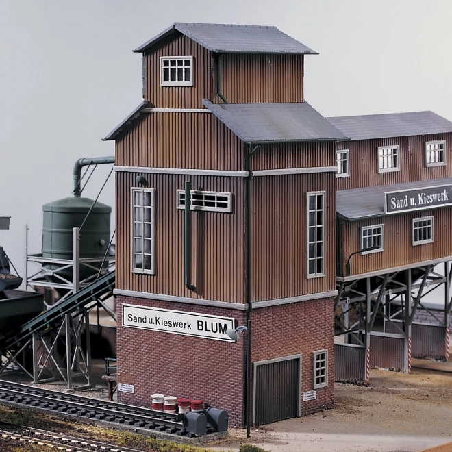 Der Sortierturm der Sandgrube E. Blum aus der Serie PIKO Authentic Edition ist Teil eines umfassenden Baukastens dieses Areals, kann jedoch auch eigenständig verwendet werden. Am Fuß ist er mit einer kleinen Rampe ausgestattet und besticht durch zahlreiche Details, Dachrinnen, Beleuchtung sowie realistische Ausstattungsmerkmale der Anlagentechnik, verschiedene Auslässe und Armaturen. Die Türen des Gebäudes sind funktionsfähig und lassen sich öffnen. Das Gebäude kann individuell mit den Bausätzen Laderampe, Silo mit Förderer, Schienenkran und Geschäftsbüro erweitert werden. Zum Bausatz gehört auch eine Grundplatte zur Gestaltung der unmittelbaren Umgebung, insbesondere vorbereitet für die Erweiterung um ein Silo mit Förderer. Andere auf dem Bild dargestellte Gegenstände (Autos, Figuren usw.) sind nicht im Lieferumfang enthalten. Die Kunststoffminiaturen von PIKO finden Verwendung beim Entwurf realistischer Gleisanlagen und Dioramen. Mit ihrer ausgefeilten Farbgebung, in dieser Reihe zusätzlich mit Patina, ahmen sie ihre Vorbilder mit maximaler Treue nach, die in einigen Fällen mithilfe der beiliegenden Abziehbilder noch individuell verstärkt werden kann. Die detailreichen und passgenauen Kunststoffspritzlinge der einzelnen Teile fügen sich reibungslos zusammen, und dank der detaillierten Anleitung, die jedem Bausatz beiliegt, ist die Montage einfach – so können Sie Ihre wertvolle Zeit dem einzigartigen Landschaftsentwurf und der Anordnung der einzelnen Elemente auf der Szene widmen. Unter dem zu diesen Modellen angebotenen Zubehör finden Sie vielfältige Ergänzungen, Verbrauchsmaterialien sowie Leitfäden mit Anleitungen und wertvollen Tipps für den Entwurf von Gleisanlagen. Hergestellt in Deutschland nach strengsten Qualitätsstandards. Haupteigenschaften: Maßstab H0 (1:87) Erweiterbar mit weiteren Bausätzen realistische Farben mit Patinierung einfache Montage hergestellt in Deutschland Dokumentation: Montageanleitung für das Modell Nr. 61124