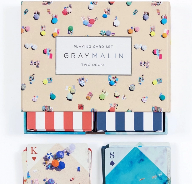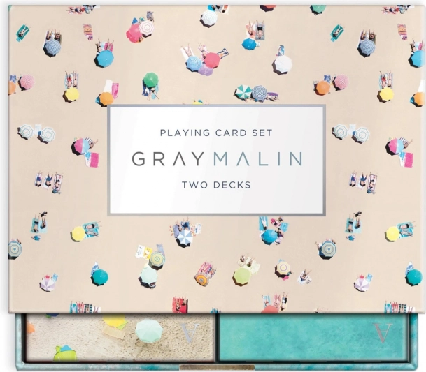 Genießen Sie das Kartenspiel mit einem luxuriösen Set von Gray Malin, das Spielbarkeit mit künstlerischer Darstellung von Strandszenarien verbindet.