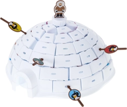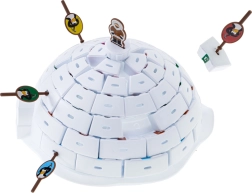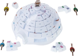 Spielregeln: Bauen Sie das Iglu gemäß Anleitung. Wählen Sie Ihren Pinguin und beginnen Sie zu spielen. Ziel ist es, dass Parka Pete auf dem Iglu bleibt. Die Spieler sind abwechselnd an der Reihe und ziehen mit der Eisstange Eisblöcke heraus. Verliert, wer das Iglu zum Einsturz bringt.