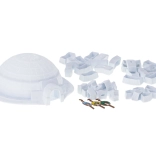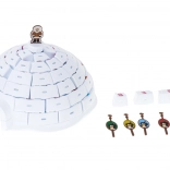 Ein interaktives Spielset mit einem weißen Iglu aus miteinander verbundenen Kunststoffblöcken ermöglicht ein fantasievolles Aufbauen und kreatives Spielen.