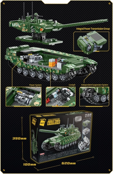 Baue den ikonischen chinesischen Panzer 99A aus 2.743 Teilen und entdecke seine Geheimnisse dank eines leicht zugänglichen Innenraums, eines voll drehbaren Turms und eines unabhängig gefederten Fahrwerks. Ein Highlight ist das große Modell der Antriebseinheit 150HB-2, das Einblicke in die Konstruktionsdetails ermöglicht. Das Qman-Set ist kompatibel mit anderen Marken und aus robustem ABS-Kunststoff gefertigt.