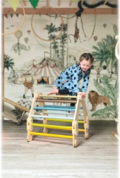Dieses Klettergerüst besteht aus einer hochwertigen Kombination von Sperrholz und Massivholz, was seine Widerstandsfähigkeit und Stabilität gewährleistet. Dank der Möglichkeit, es in verschiedene Formen zu gestalten, bietet es vielseitige Spielmöglichkeiten und ist zudem außerordentlich platzsparend. Ideal für die Entwicklung von Gleichgewicht und motorischen Fähigkeiten bei Kindern und kann auch in der Bewegungstherapie eingesetzt werden.